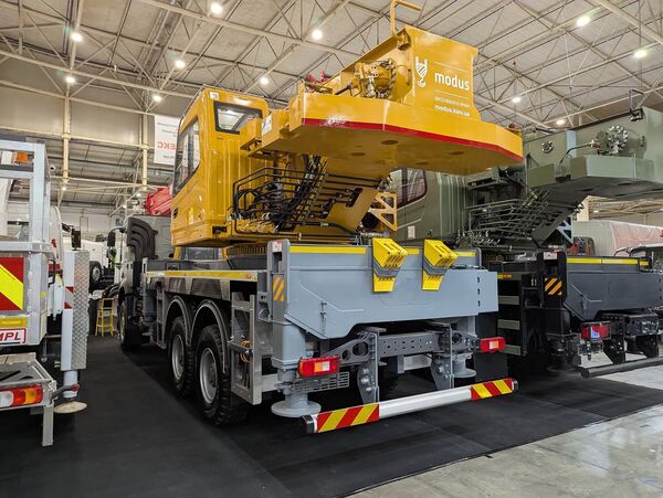 Завдяки довгій співпраці між заводом МОДУС і Volvo Ukraine LLC, компанією Вольво було спроектовано і виготовлено повнопривідне шасі для автокранів MODUS. Завдяки цьому шасі і новим розробкам завода МОДУС, автокран, що був представлений на виставці, мав споряджену масу 26 тонн і ідеальний баланс маси по вісям. Дана модель є найбільш масовою в лінійці заводу.