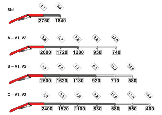 Вказані вильоти стосуються кута нахилу стріли 20° і тому не є максимальними. При використанні механічних подовжувачів стріли навантаження, зазначені на діаграмах, необхідно зменшити на вагу цих подовжувачів.