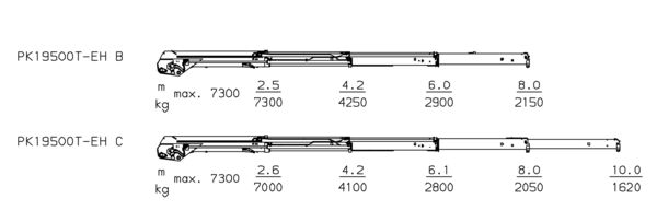 Характеристики модифікацій на кран-маніпулятор Palfinger PK 19500T-EH High Performance