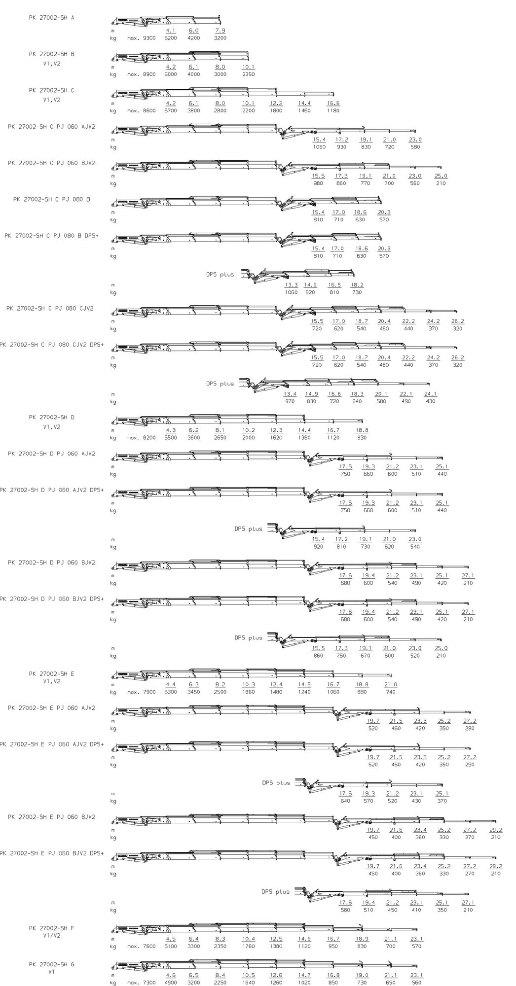 PK 27002 SH F V1, V2 | 22,8 тм | 23,1 м | 7600 кг | 570 кг | ∞ º | 3578 кг | Дізнатись ціну |