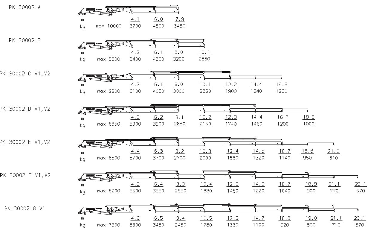 PK 30002 C V1, V2 | 25,9 тм | 16,6 м | 9200 кг | 1260 кг | 400 º | 3291 кг | Дізнатись ціну |