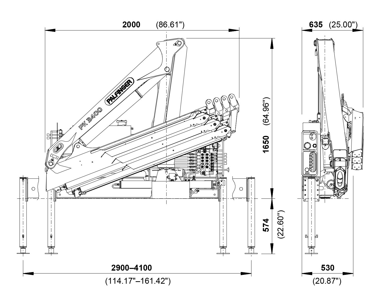 Характеристики модифікацій на кран-маніпулятор Palfinger PK 3400 High Performance