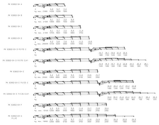 PK 63002 EH G V1, V2 | 52,6 тм | 24,9 м | 18400 кг | 1000 кг | ∞ º | 6804 кг | Дізнатись ціну |