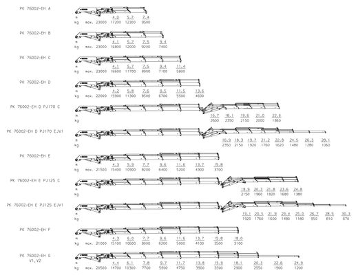Характеристики модифікацій на кран-маніпулятор Palfinger PK 76002 EH High Performance