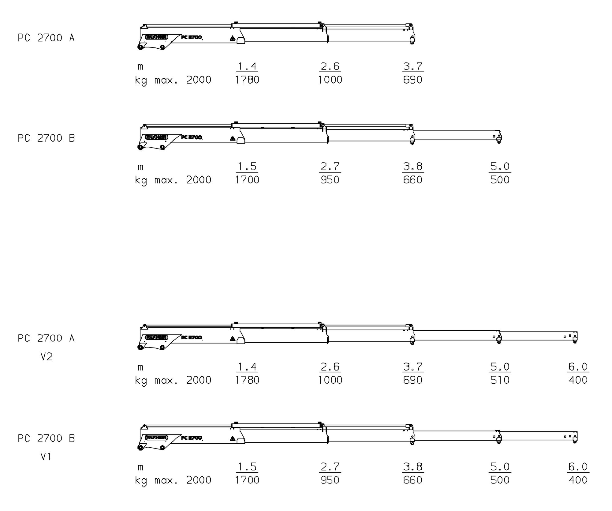 Характеристики модификаций на кран-манипулятор Palfinger PC 2700 Compact