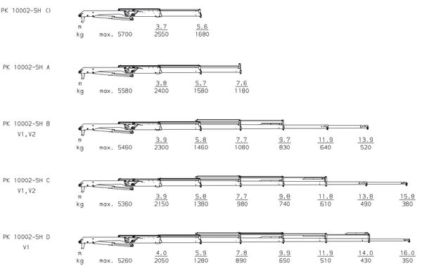 Характеристики модификаций на кран-манипулятор Palfinger PK 10002 SH High Performance