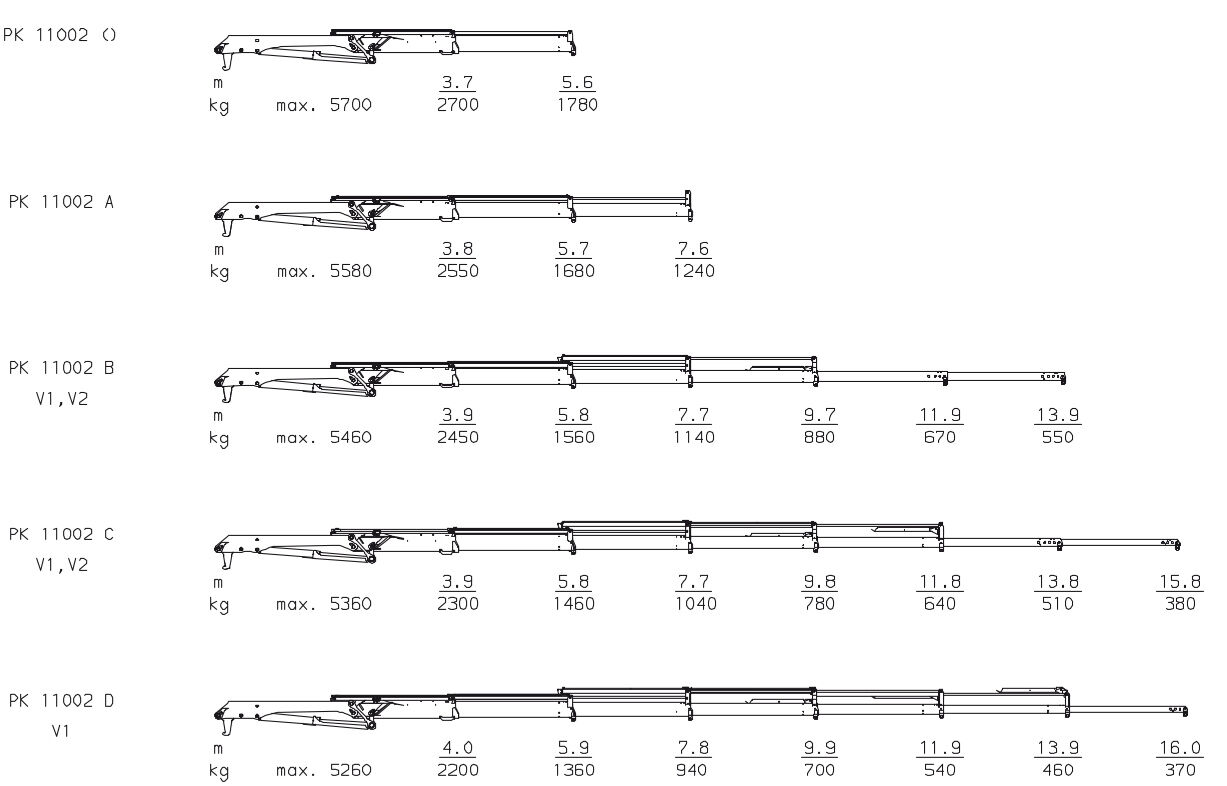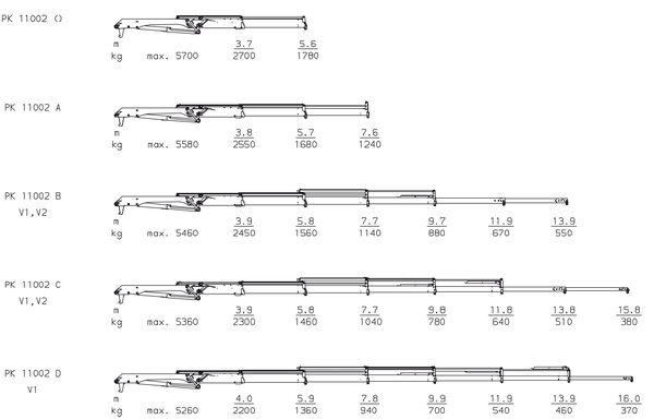 Характеристики модификаций на кран-манипулятор Palfinger PK 11002 High Performance