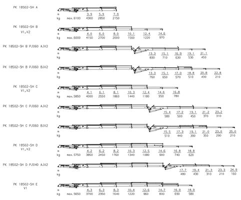 PK 18502 SH B V1, V2 | 16,7 тм | 14,6 м | 6000 кг | 970 кг | 420 º | 2030 кг | Узнать цену |