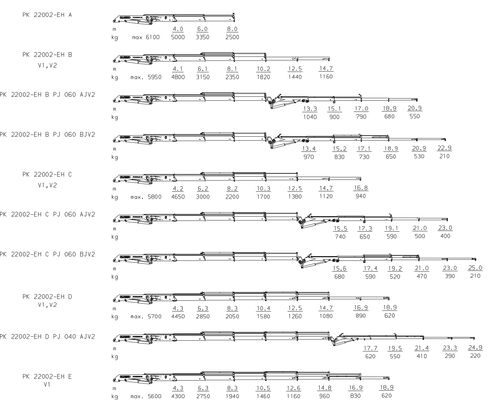 PK 22002-EH B V1, V2 | 19,7 тм | 14,7 м | 5950 кг | 1160 кг | 400 º | 2559 кг | Узнать цену |