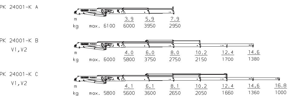 Характеристики модификаций на кран-манипулятор Palfinger PK 24001-K High Performance